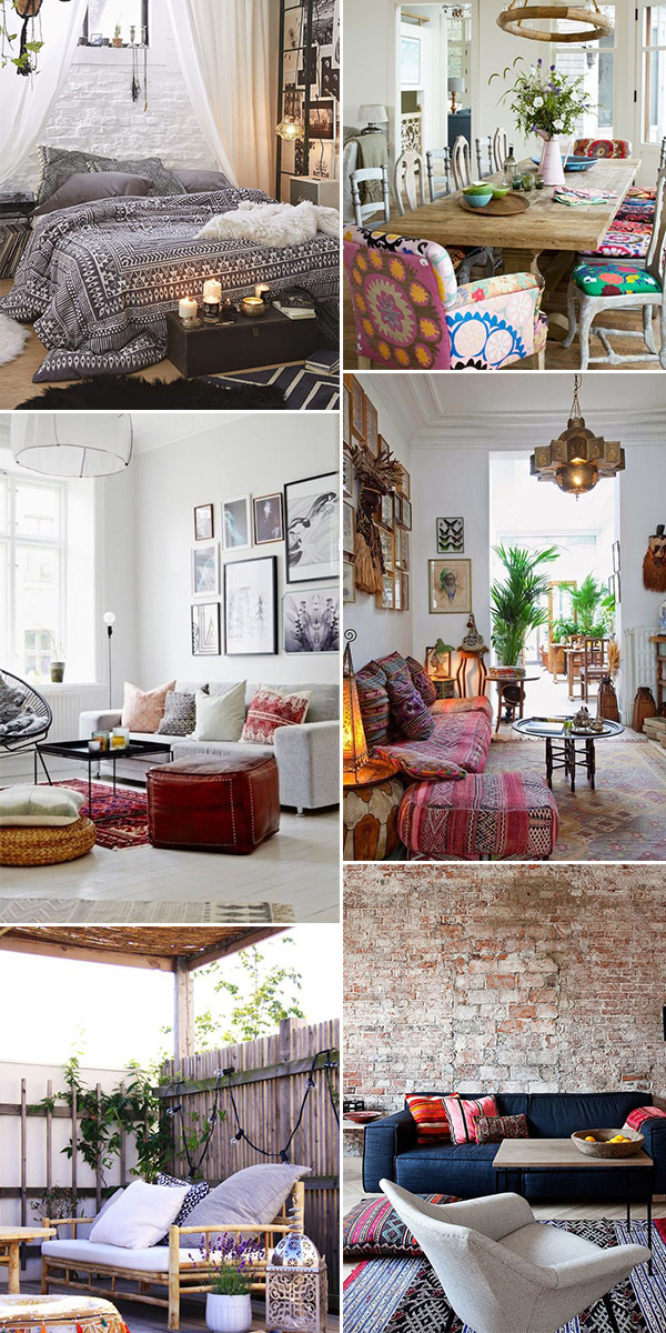 Bohemian style features a fun mix of color and patterns, furniture styles, and unexpected decor—along.